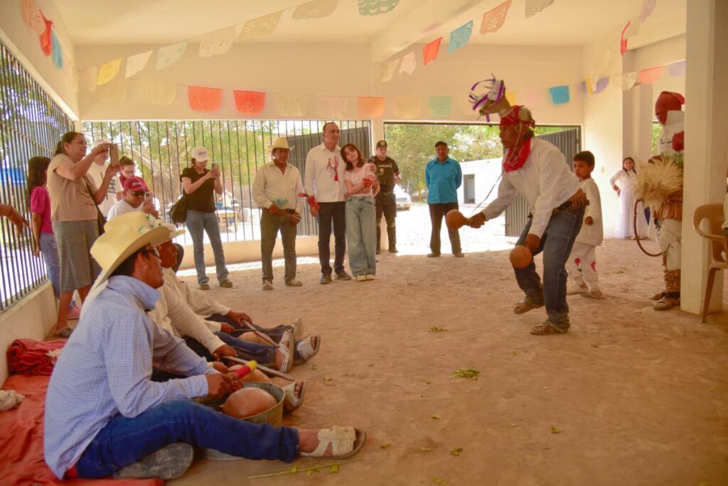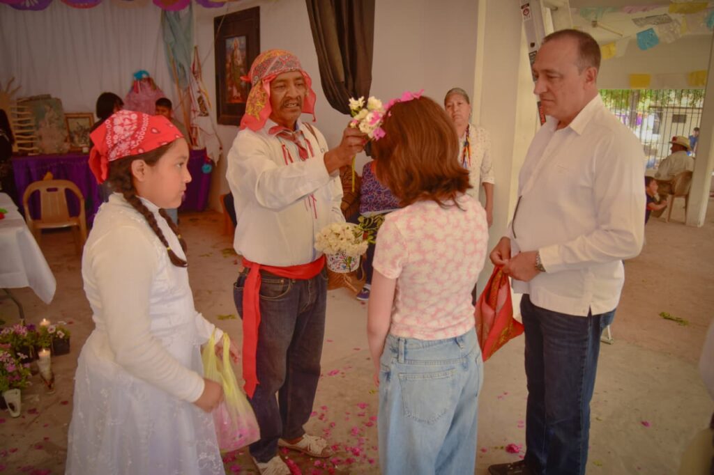 Los Mochis, Sinaloa. A 04 abril 2026.- El Presidente Municipal de Ahome, Antonio Menéndez de Llano Bermúdez, visitó los centros ceremoniales de los ejidos La Florida y 5 de Mayo durante los recorridos de Semana Santa. Escuchó las necesidades de las comunidades y reafirmó su apoyo a la preservación de sus tradiciones. Acompañado por autoridades tradicionales y funcionarios municipales, Menéndez participó en actividades ceremoniales, escuchó explicaciones sobre los rituales y presenció la música pascola y la Danza del Venado.