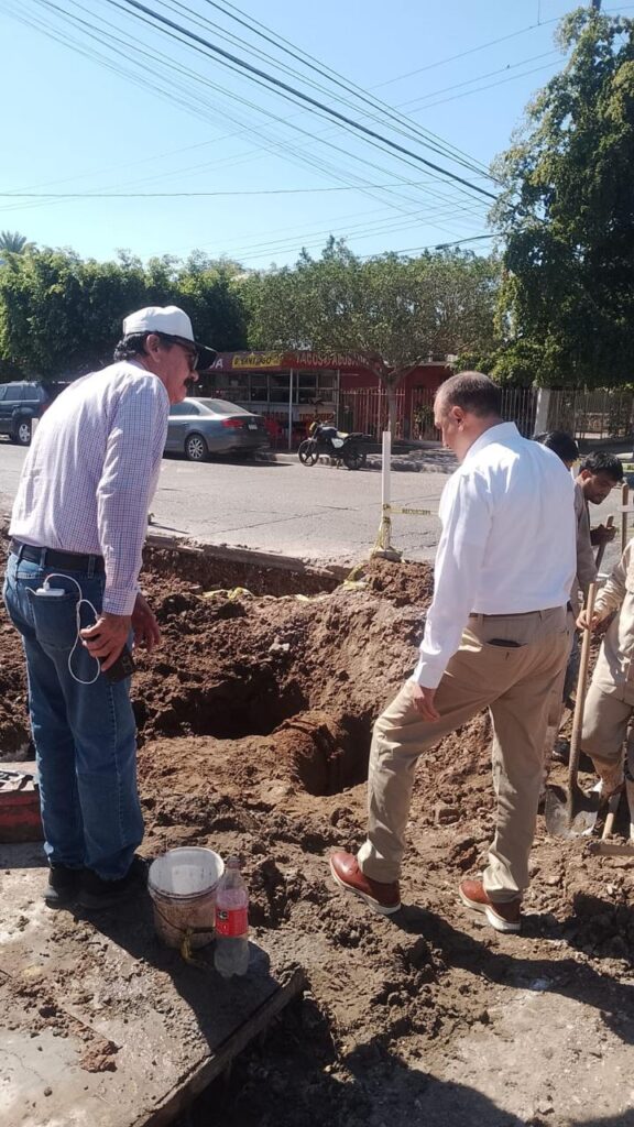 En entrevista, el Alcalde informó que acudió al cruce de bulevar 10 de Mayo y calle Guerrero, en el sector norte de la ciudad, donde efectivamente encontró una losa levantada debido a una obra grande que se realiza en ese sector, así como al tránsito de unidades pesadas.