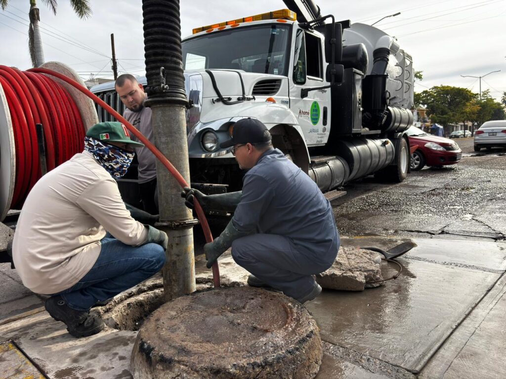 Los Mochis, Ahome, Sinaloa. A 29 de Enero de 2026.- La Junta de Agua Potable y Alcantarillado del Municipio de Ahome (JAPAMA) atendió un taponamiento severo en la red de alcantarillado sobre el bulevar 10 de Mayo, entre Rosales y Río Sinaloa, en el Infonavit Macapule. Para ello, se empleó equipo Vactor para realizar trabajos de sondeo y succión.