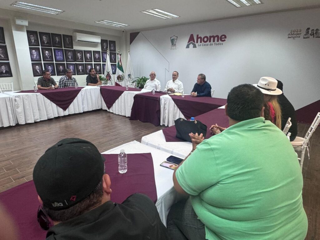 Los Mochis, Sinaloa. A 01 abril 2026.- Como parte de los preparativos previos a los días santos, el Presidente Municipal de Ahome, Antonio Menéndez de Llano Bermúdez, sostuvo una reunión de trabajo con síndicas y síndicos en el Salón de Cabildo, donde se analizaron y coordinaron diversas acciones para atender de manera oportuna los puntos de mayor concentración de personas durante el periodo vacacional.