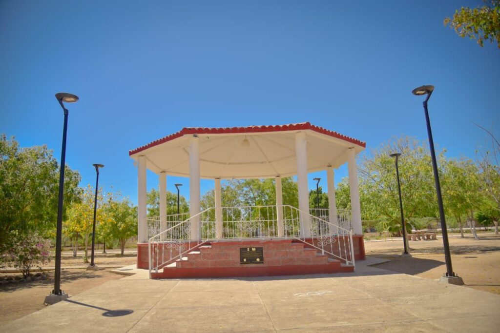 En la comunidad del ejido Guillermo Chávez Talamantes, el Presidente Antonio Menéndez entregó a los habitantes del lugar los trabajos de construcción de la red de alumbrado público en la plazuela de la localidad, donde se instalaron 23 luminarias con una inversión de 657 mil 414 pesos, en beneficio de toda la población.