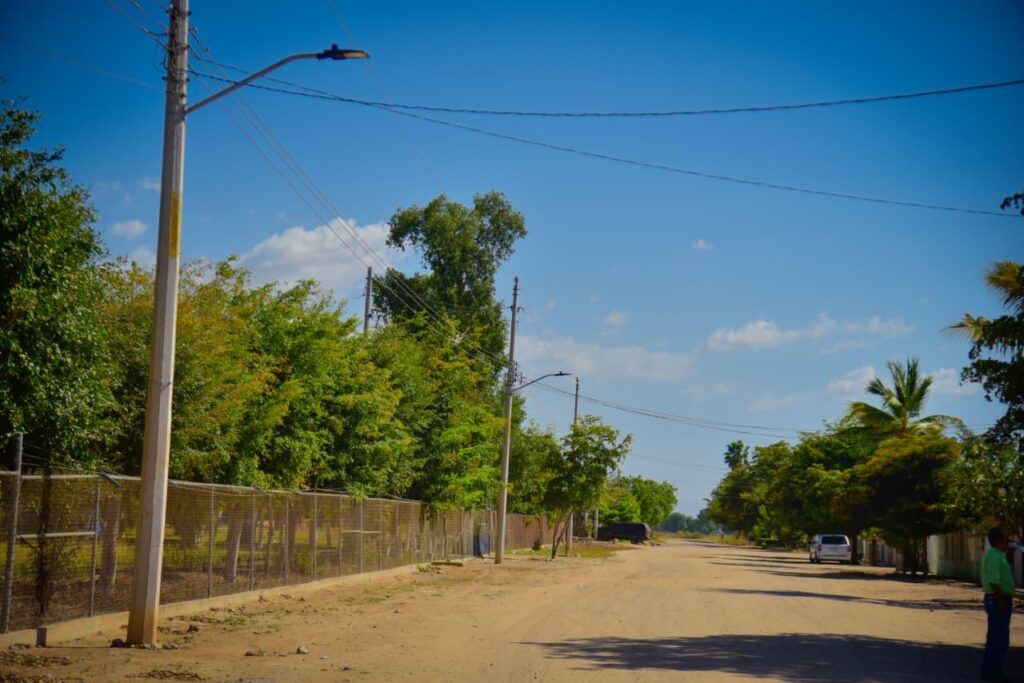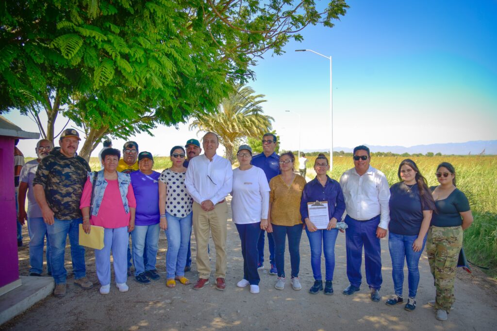 El Carrizo, Ahome, Sinaloa. A 09 Abril 2026.- En una intensa gira de trabajo por comunidades del valle de El Carrizo, el alcalde Antonio Menéndez entregó a los habitantes de 5 poblaciones, diversas obras de impacto social que coadyuven a su bienestar y dignifiquen sus condiciones de vida, como pavimento y alumbrado público, con inversión global de poco más de 4 millones de pesos.