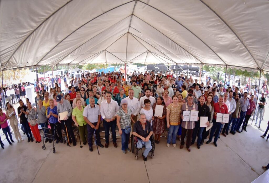 Los Mochis, Sinaloa. A 28 Marzo 2026.- El INSUS entregó escrituras públicas a 405 familias ahomenses de la colonia Ferrocarrilera que vivían en lotes irregulares. Además, 133 familias recibieron constancias de liquidación de sus créditos del FOVISSSTE.